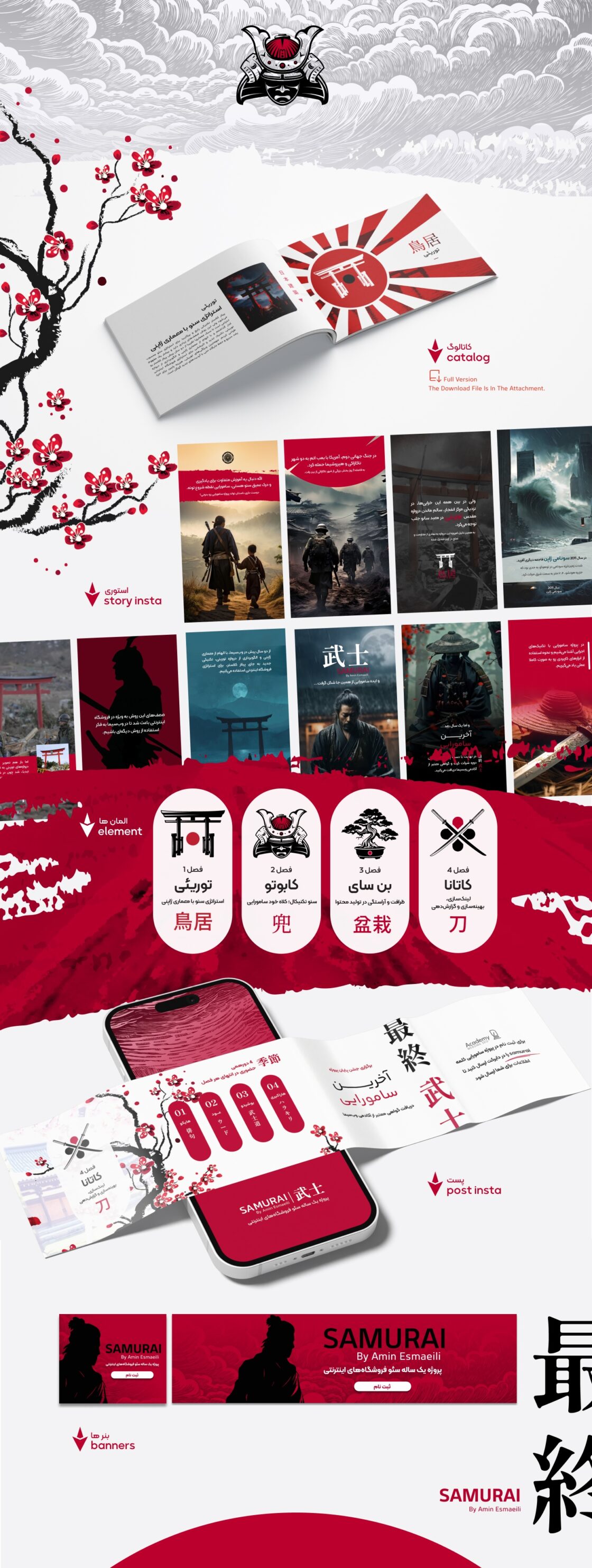 Design with a sharpened edge — “Samurai” was a one-year educational program where I crafted a full visual identity inspired by samurai aesthetics, including storytelling-driven elements, ads, a course catalog, and UI graphics.